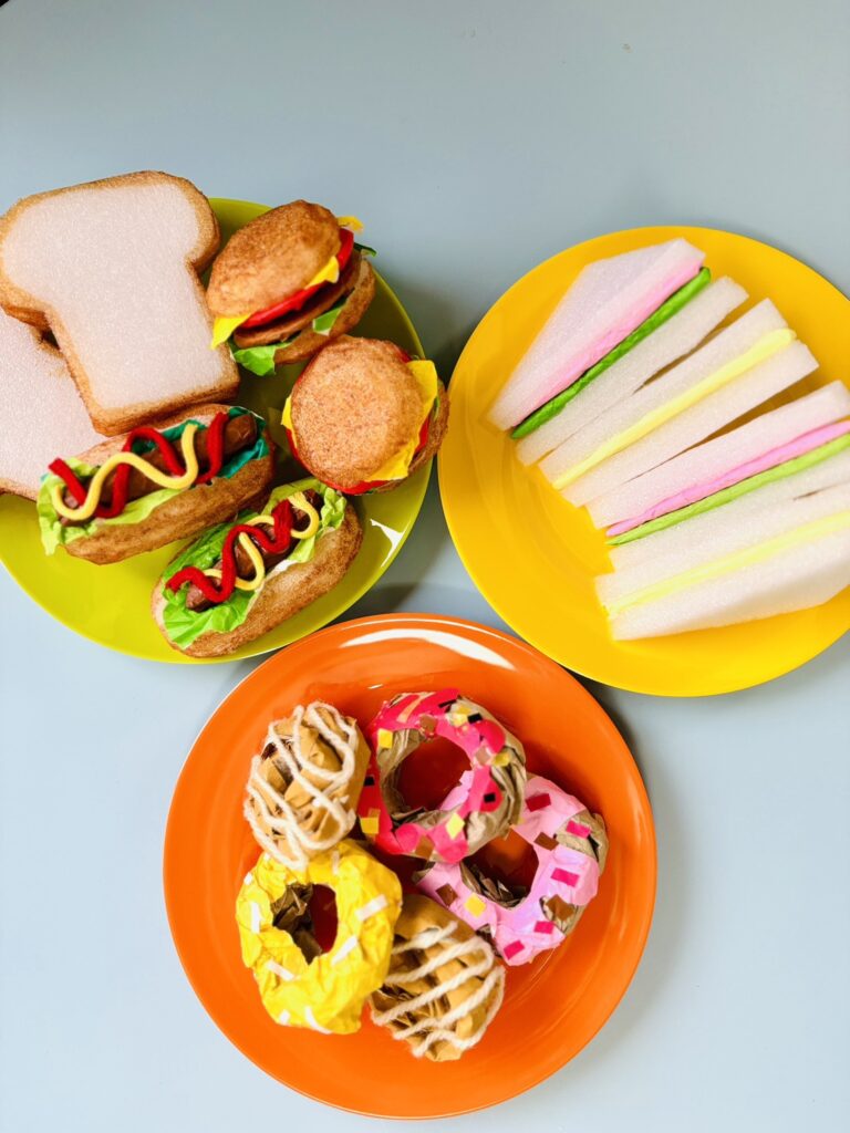 ハグの木の先生が一つひとつ心を込めて作った、かわいいスイーツやパンたち。まるで本物のように見えるこの手作り作品は、子どもたちの療育活動や創作体験で活用していきます。